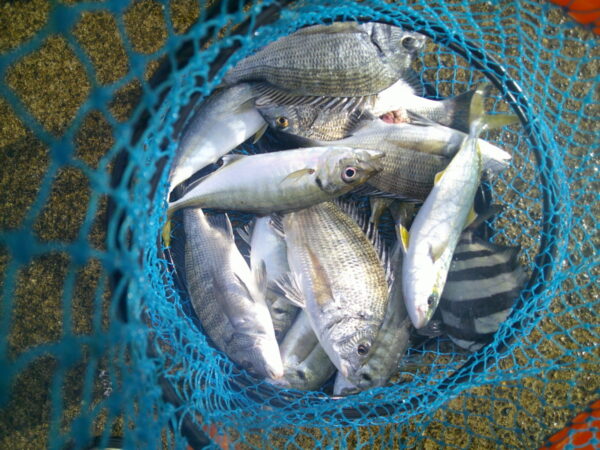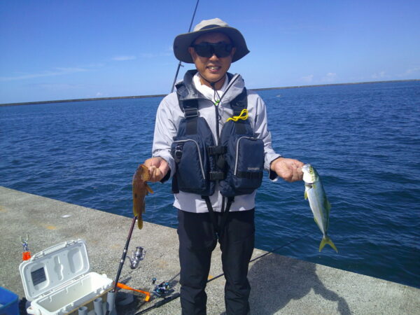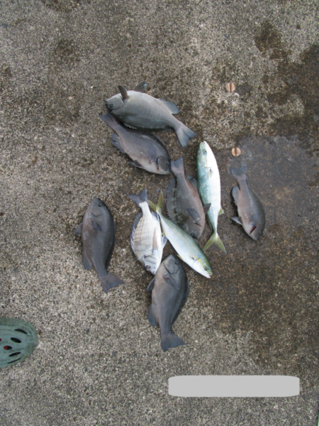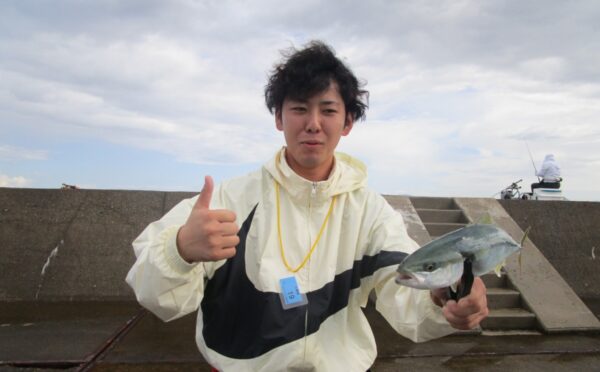 しかし、残られた方は雨にも負けずに時々発生するナブラに向けメタルジグを投げイナダやワカシを釣ったり、カゴ釣りでクロダイ・良型アジ等を多数釣った夫婦もおり、雨上がりの釣りを楽しんでいました。