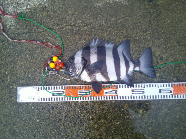 340m外側 シマダイ2匹~25cm 落とし込み