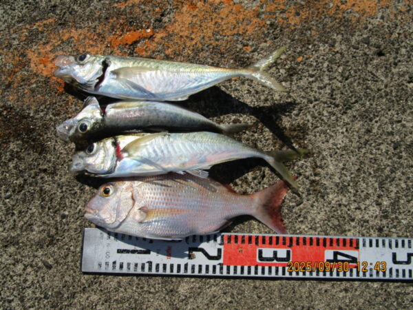 340m内側 クロダイ4匹 ~30cm アジ3匹 ~35cm
