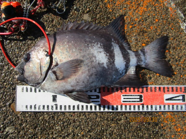 先端内側 イシダイ 31cm ヘチ釣り