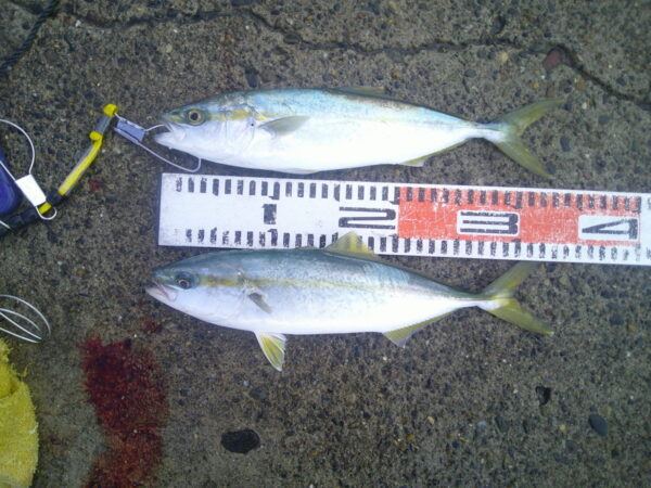 585m外側 ワカシ31cm イナダ36cm 泳がせ釣り