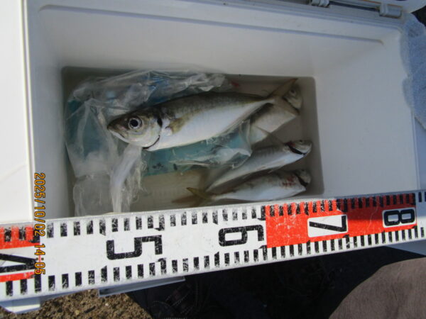 午後3時過ぎには550m~先端内側でアジが多数釣れ始めていました。