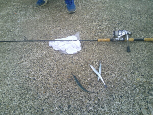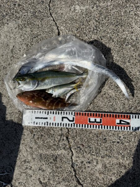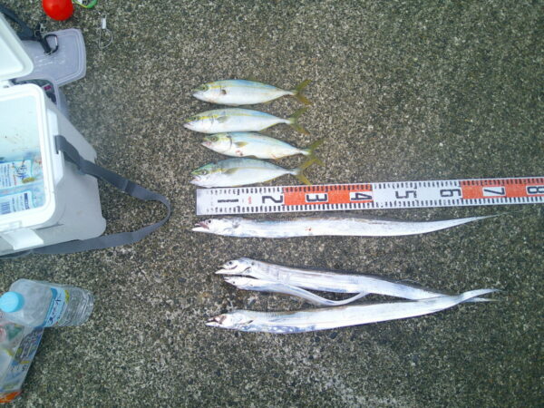 250m 外側 ワカシ4匹~30cm・タチウオ4匹~78cm(指2本)