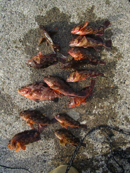 100~200m内側 キジハタ・カサゴ14匹 ~27cm (小さい魚はリリースしました)