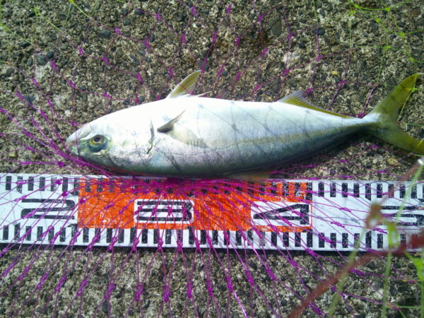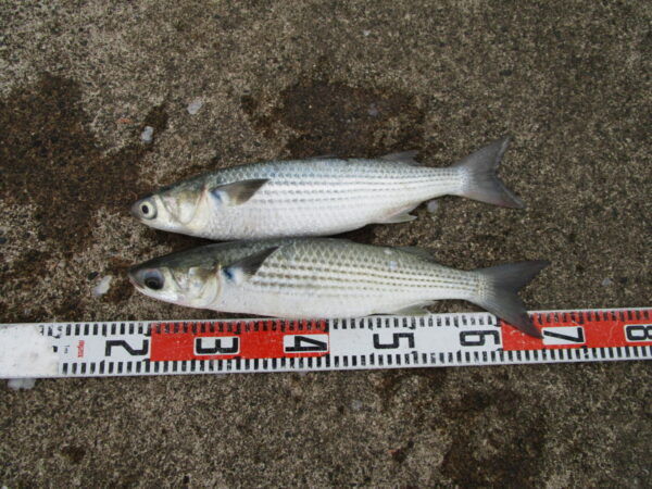 250m内側 ボラ2匹~47cm 遠投カゴ釣り