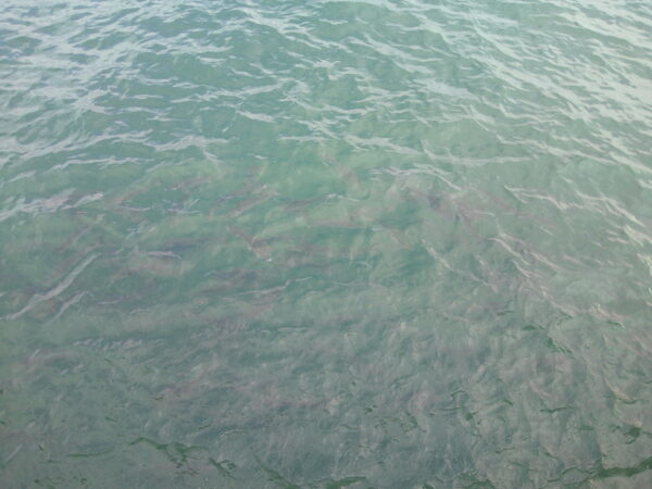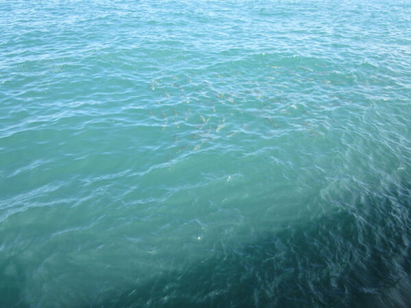 630m外側付近で撮影した群れで回遊する魚(ボラ)