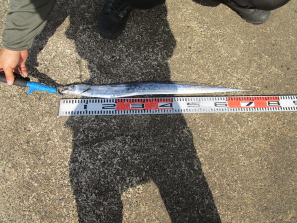 490m外側 タチウオ66cm 指2.5本、メタルジグ