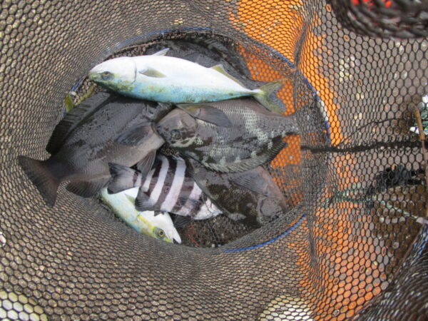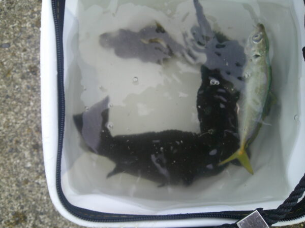 午後から雨予報が出ている 曇り空の始まりです 昨日の悪天候で 朝方までうねりが残り 濁りも入っています 海がまだ落ち着いていないのか 中々釣果が上がりません 雨が降る前にもう少し釣果が伸びてほしいものです