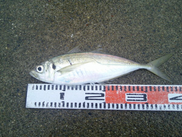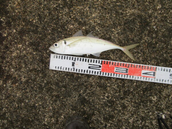 その小雨が段々と強まる中、丸々と太った良型のアジがポツポツ上がっており、