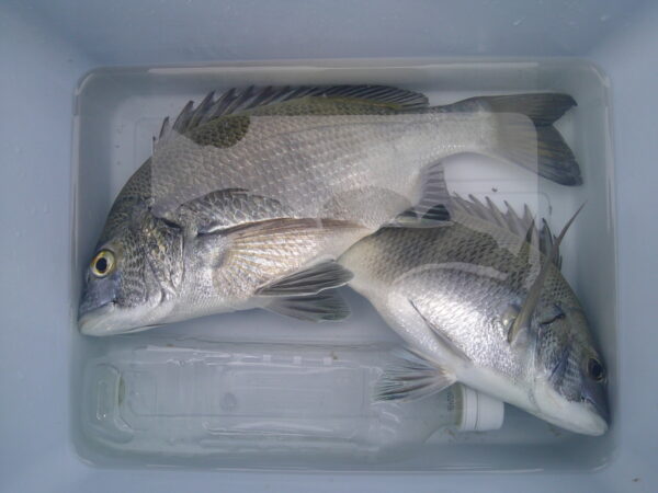 600m内側 アジ38cm クロダイ2匹 カゴ釣り