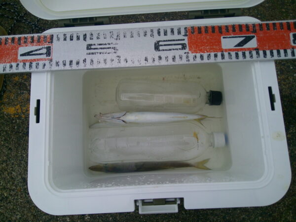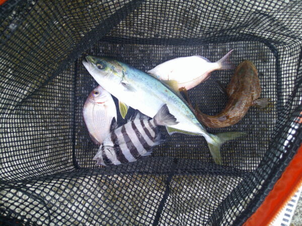 なお、お昼頃から若干南風が強まり、内側での釣りは向かい風で大変でしたが、午後2時過ぎには収まり37~38cmクラスのアジが釣れていますので、期待しても良いかもしれません。