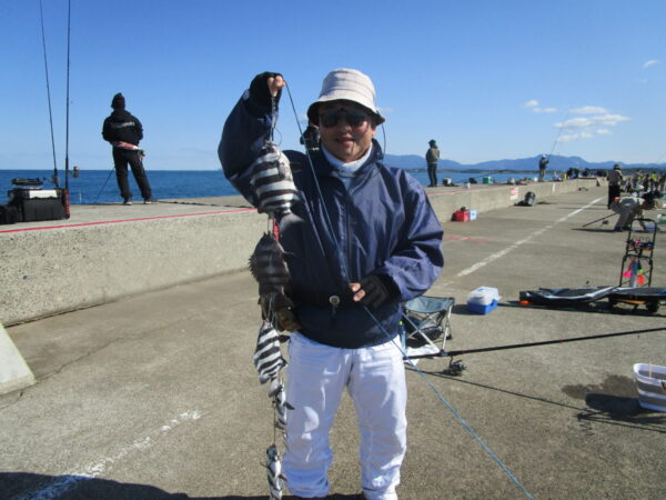 600m内側 アジ3匹 ~36cm カゴ釣り
