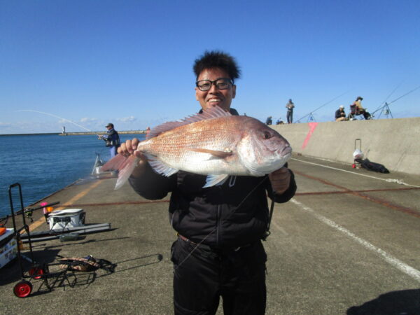 本日は晴天に恵まれ 沢山の方にお越し頂きました 午後から北寄りの風が出て 外側は少し釣りずらかったと思います そんな中 内側で久しぶりの赤い天使 72cmが上がりました 静かな状況が一気に活気にあふれて来たようです やはり大きなマダイは インパクトがあります