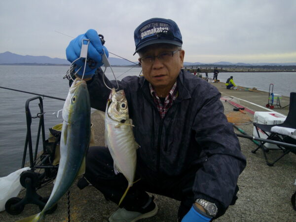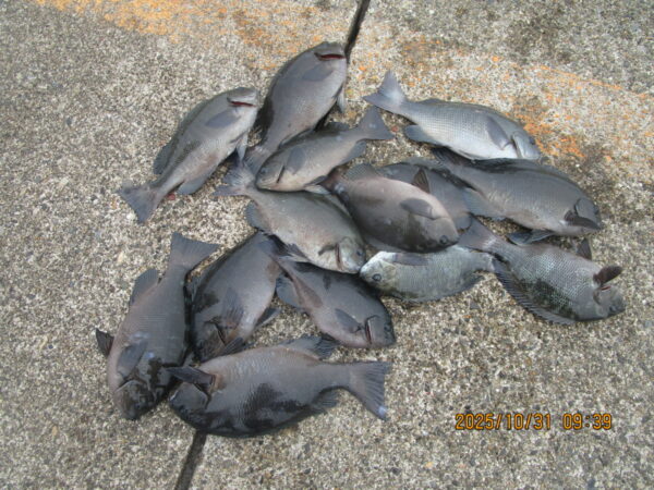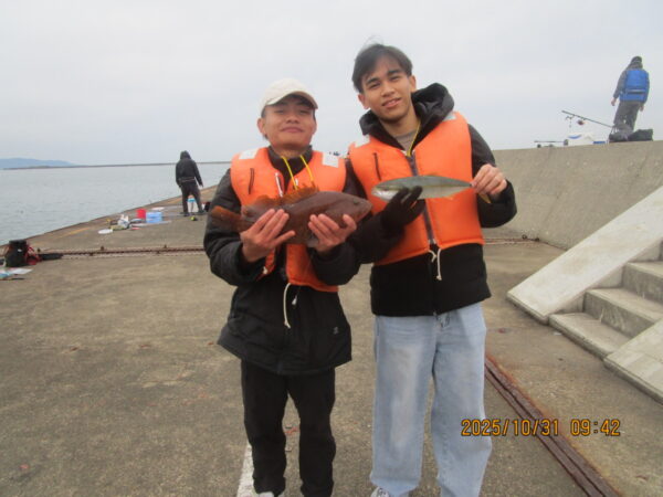 朝から寒く秋というより冬に近い気候でした。夕方にかけて雨予報となっておりますので午後から来られる予定の方は各自で対策をして下さい。(防波堤上にまだ空きがございます。)