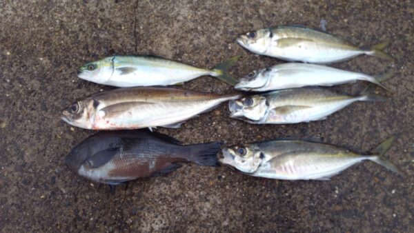 アジ・サバの数は少ないですが 大きいのをヒットすると35cm~40cmが上がっています。