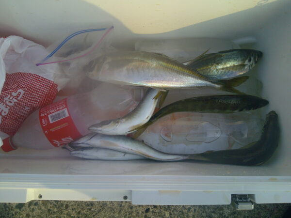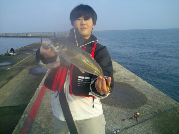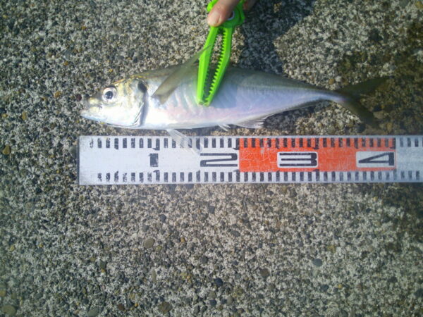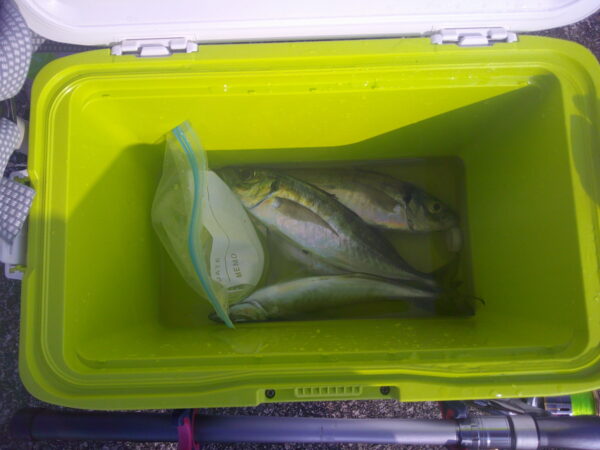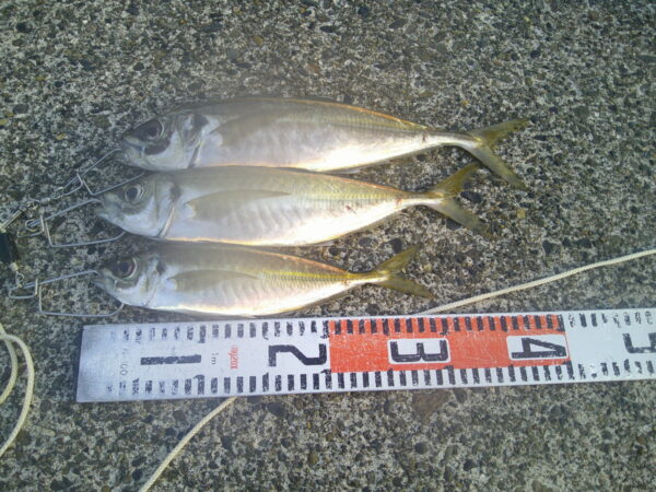 場所によっては 朝一で尺超えのアジが上がり 大喜び。