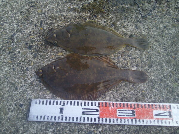 250m外側 カレイ2匹~38cm カゴ釣り