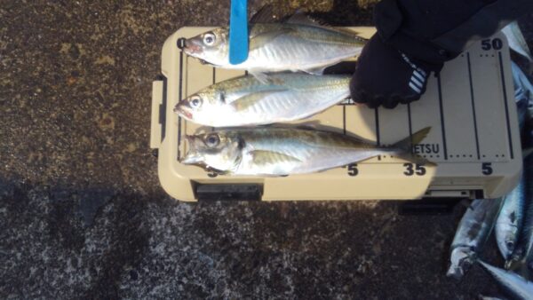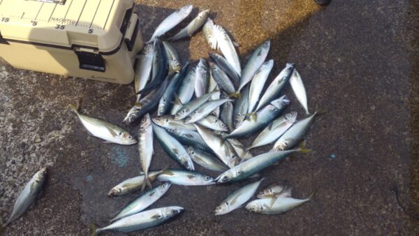 先端外側 サバ12匹 ~43cm アジ3匹  サビキ釣り