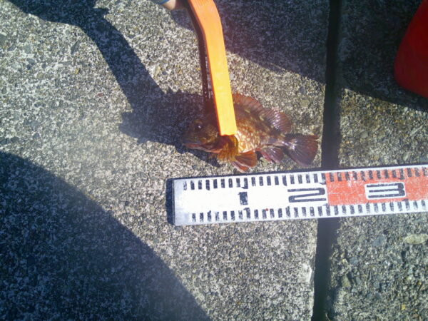 460m外側 キジハタ20cm 子供による穴釣りのブラクリ