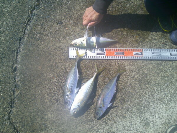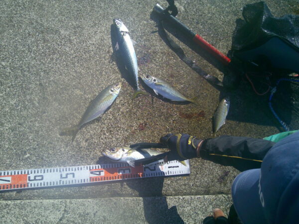 650m内側 アジ4匹 ~34cm サビキ釣り