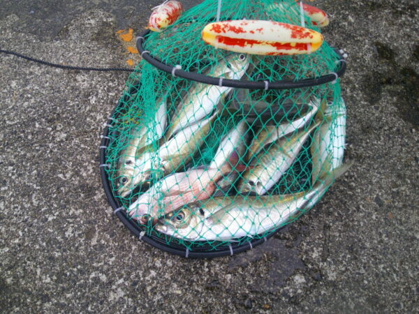 先端外側 アジ9匹~39cm マダイ25cm カゴ釣り