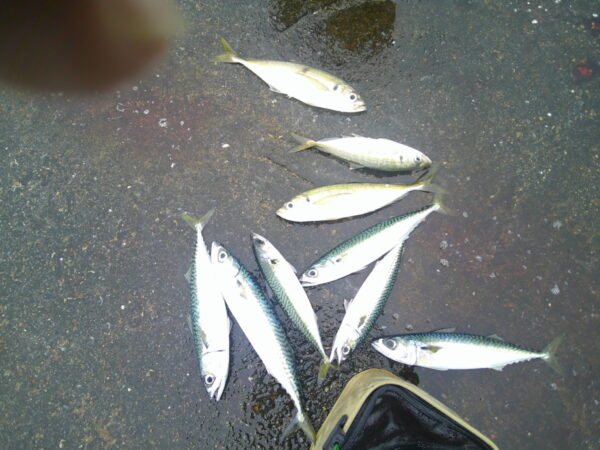 悪天候の為 大型船の入港がずれ込み 本日出港後の12時30分に 開放となりました 21日の夕方 作業中に 内側にアジの大群が回遊してきました 期待していましたが 2日間の間に移動したかもしれません それでも 先端外側付近でよく釣れているようです