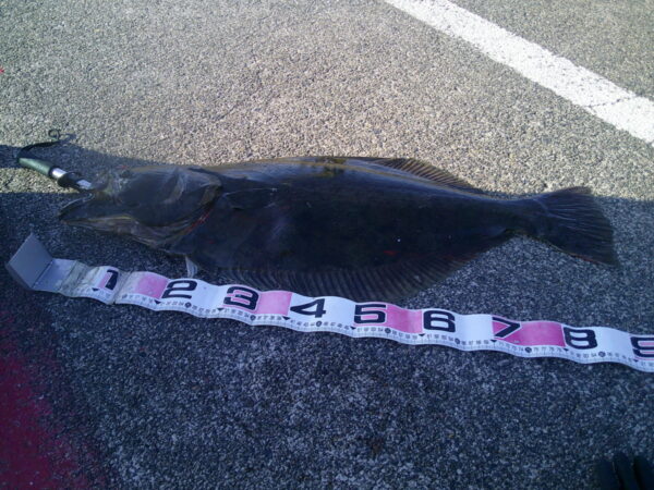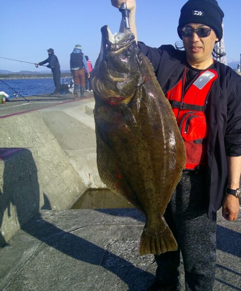 先端 ヒラメ90cm 泳がせ釣り(イワシ)