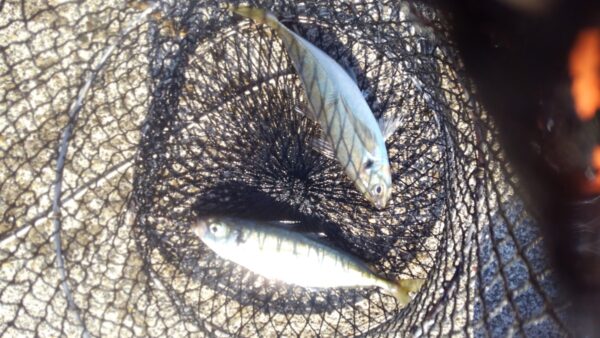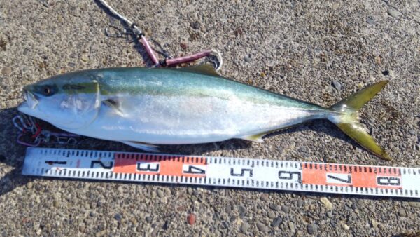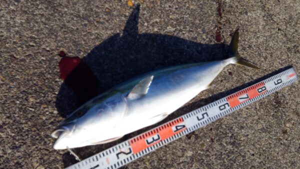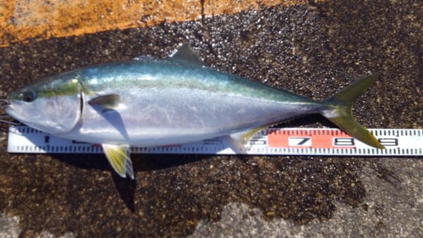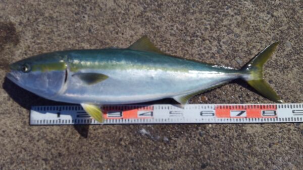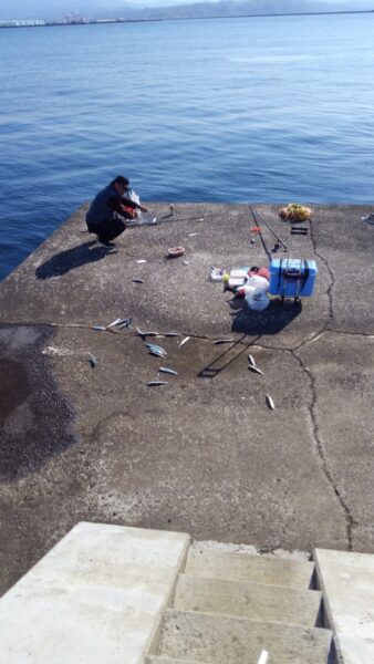 15センチ位のイワシが入れ食い状態になりました。その後、イワシの群れが