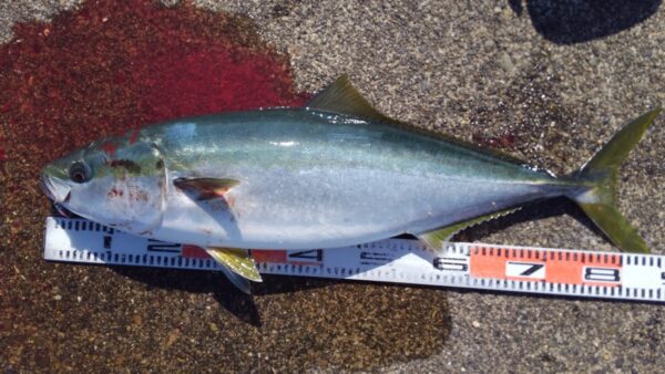 堤防外側に回ると220m~400m付近で再度ブリが釣れ始めました。