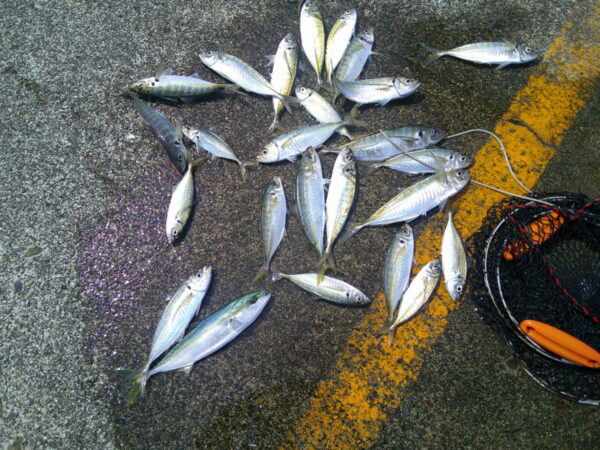 540m外側 アジ総数50匹(一度車に運びました) サビキ釣り