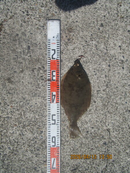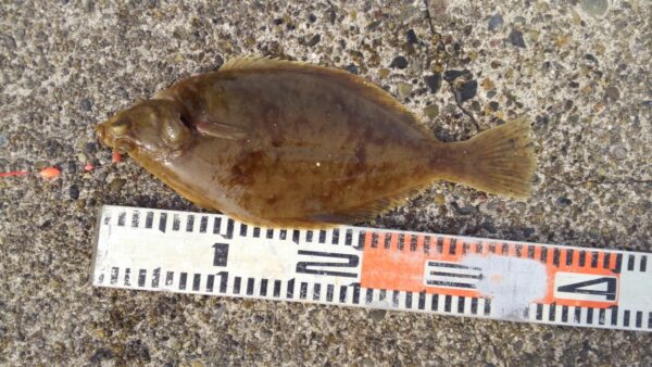350m外側 カレイ37cm ブッコミ釣り